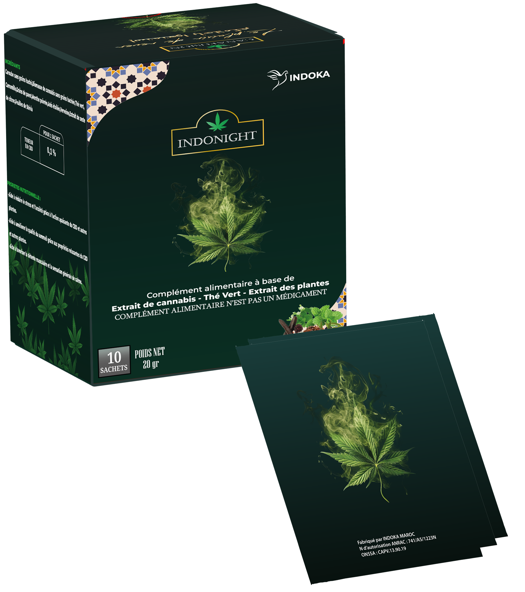 Indonight presente desormais toute l histoire du produit sur une seule page, incluant le flacon, le packshot sombre et la presentation infusion.
